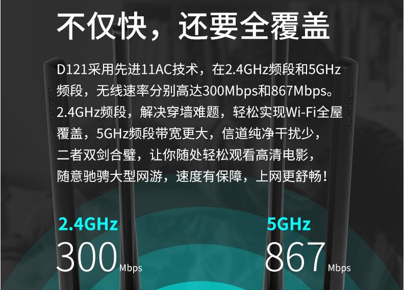 水星無線路由器家用高速wifi 5G雙頻千兆速率路由器穿墻王大功率增強 百兆端口宿舍學生寢室D121